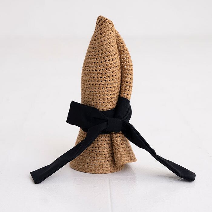 スナップボタンで外せるリボンが畳むときのバンド代わりになります。ご家庭での手洗い可能です。