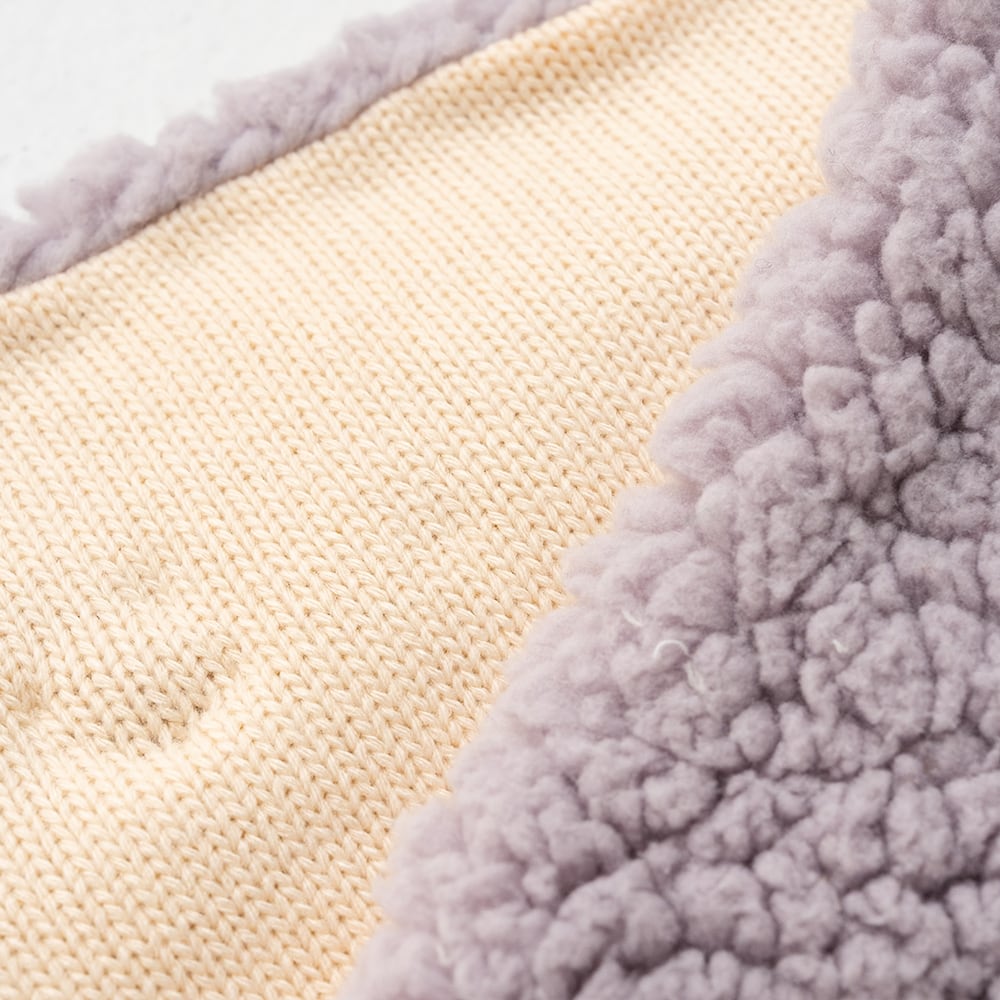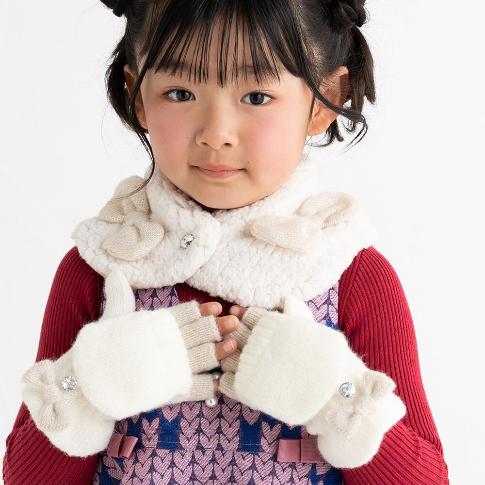 前開きで飾りボタン留めのタイプ。内側は柔らかいニットで暖かく防寒におすすめです。手袋(3523305)とコーディネートもおすすめです。