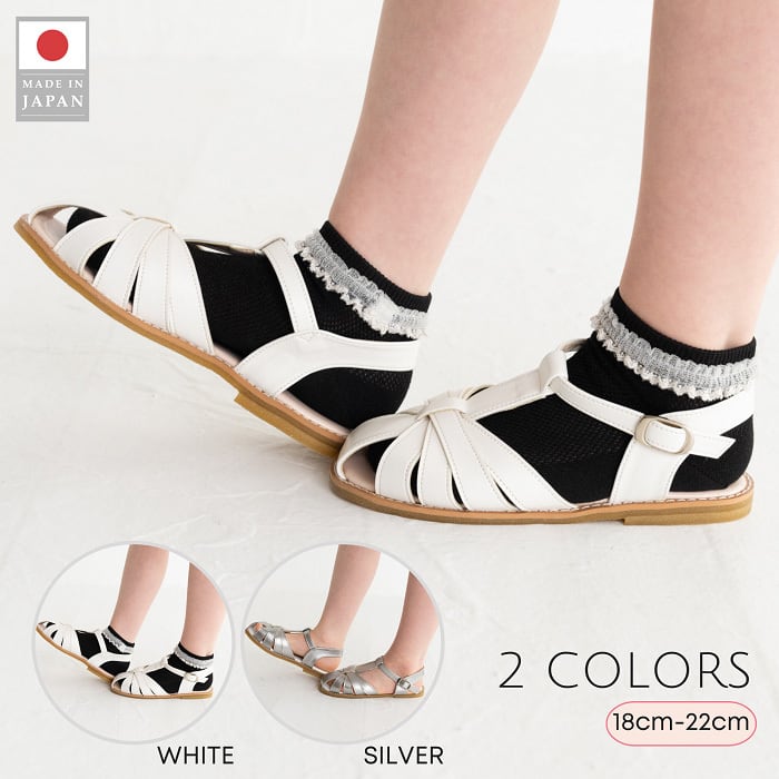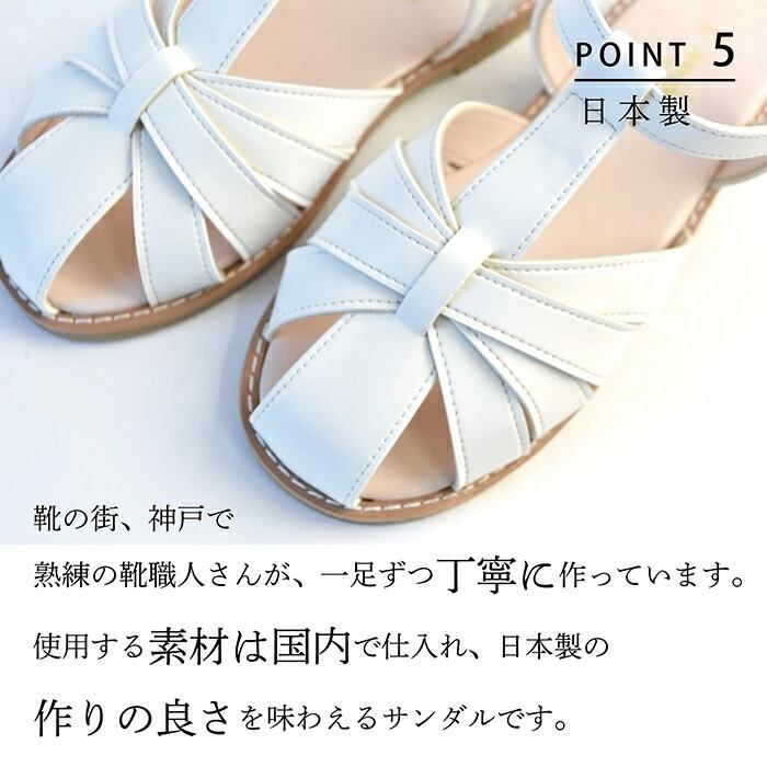 毎シーズン一番人気のメッシュサンダルを日本国内の工場で作りました。靴職人の手によるポプキンズの自信作です。つま先を包み込むようにデザインされているので、お子様の足を安全に守ります。