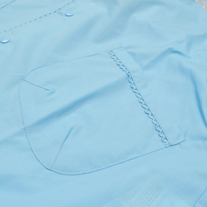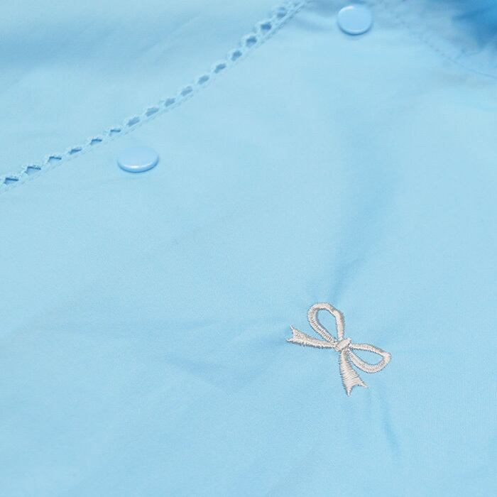 リボンのワンポイント刺しゅうがさりげなくかわいらしい、シンプルなレインコート。