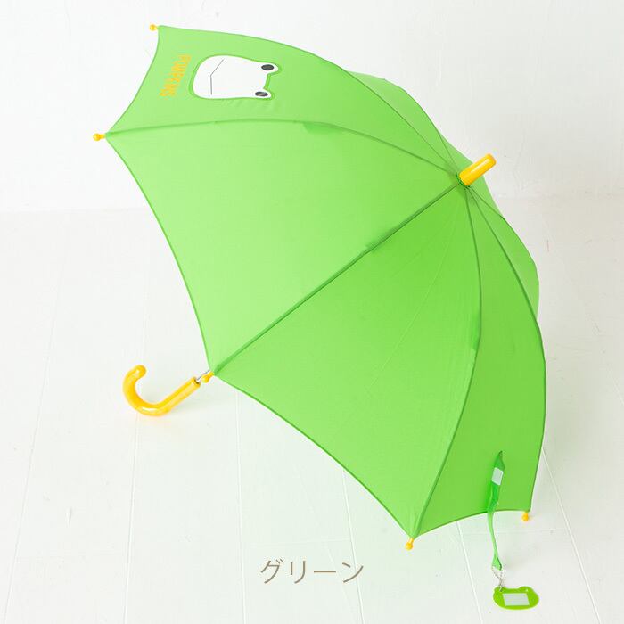 雨の日も楽しくなっちゃう、カエルの顔が窓になった傘。カエル型のネームプレート付きです。