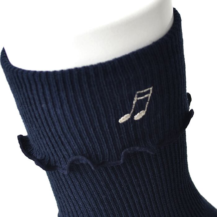 音符のさりげない刺しゅう入り二つ折りソックス。