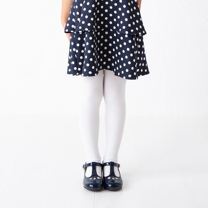 後ろ側にメロウミシンが入り、ポイントでちょんちょんと小さめリボンがたくさん付いたキュートな50デニールのナイロンタイツです。
