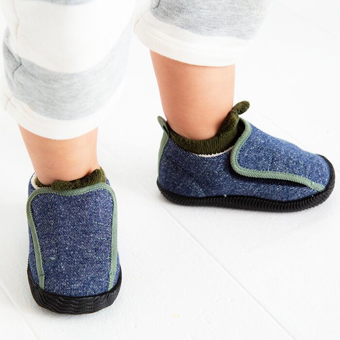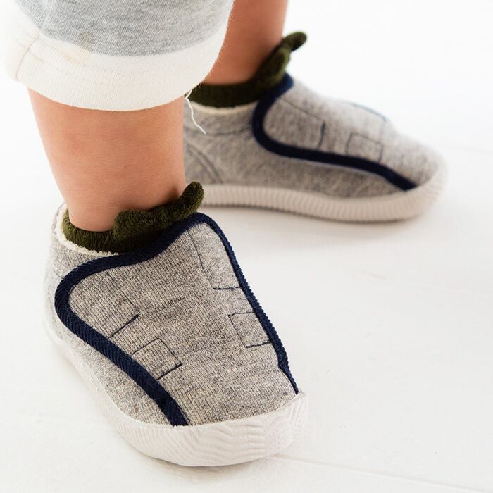 裏毛パイル生地を使用したベルトシューズ。