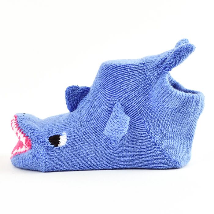 ぐわっと開いた大きな口には歯もちゃんとついているこだわりのデザイン。尾びれ、背びれもついて可愛く仕上がっています。お出かけするときに履かせたい、楽しいソックスです。