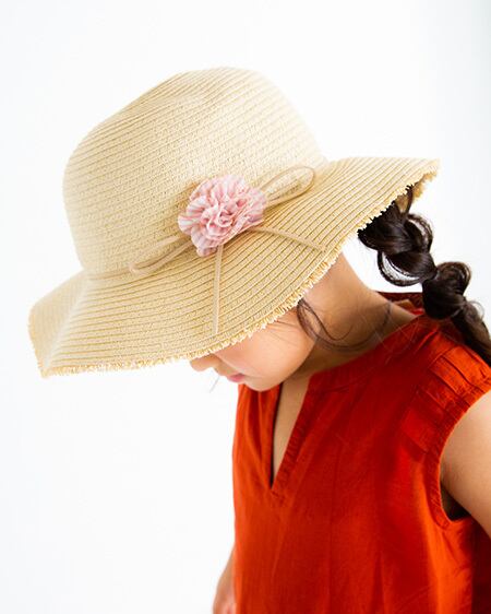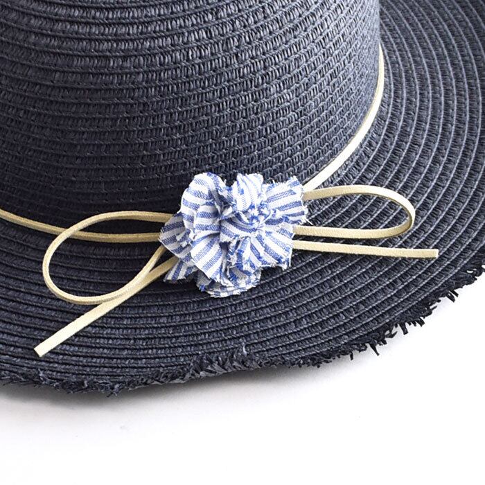 軽さが魅力のペーパーブレードのハットは、お花のコサージュとつば先のフリンジがポイントです。