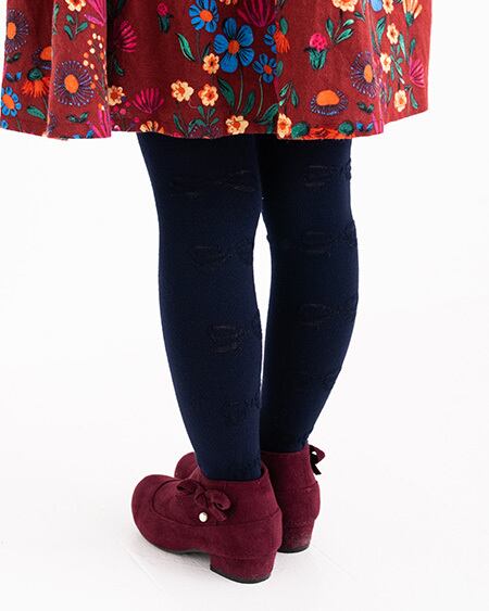 後ろ側にリボン模様を並べたタイツです。