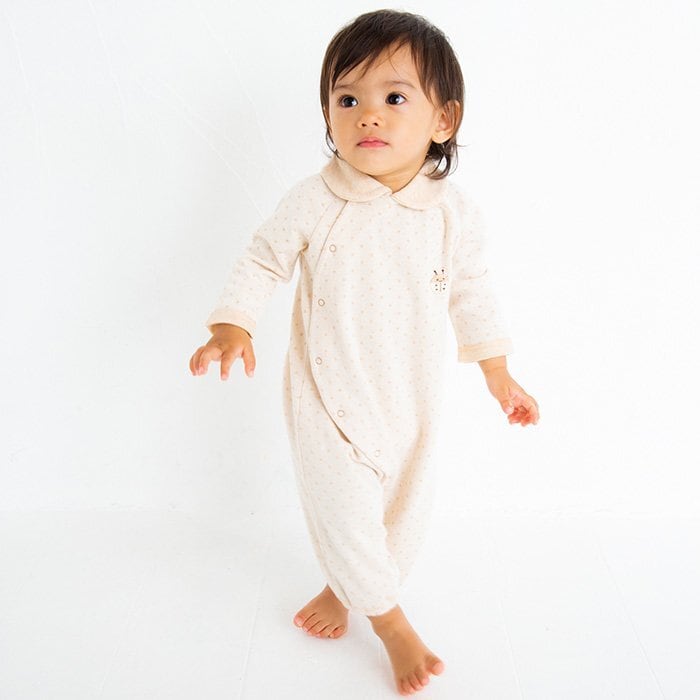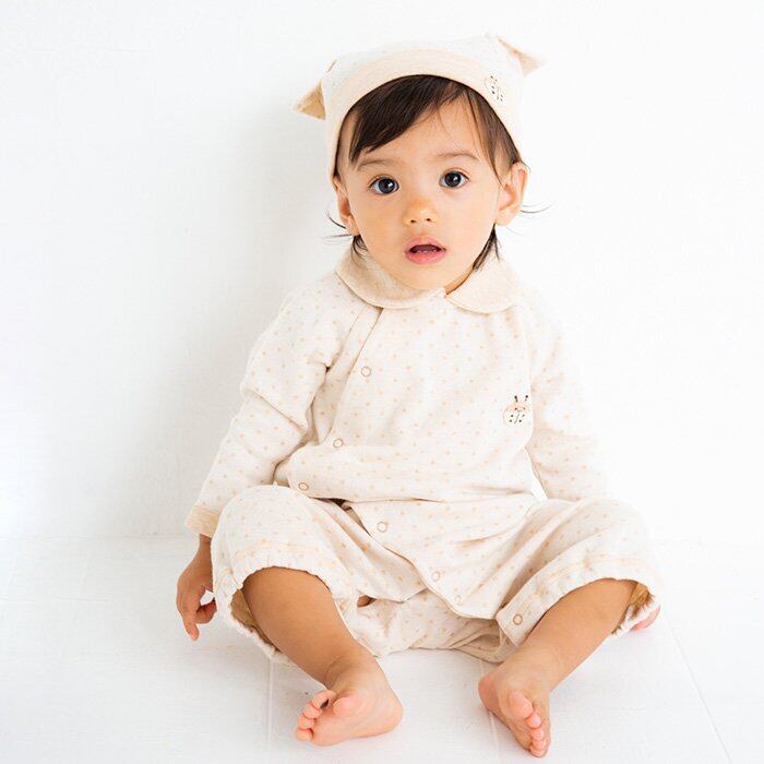 やわらくて肌触りの良い、オーガニックコットン100%のダブルフェイス素材を使用した2wayドレス。てんとうむしの手編みモチーフ付きで、女の子にも男の子にもおすすめです。新生児の頃はドレス型、足の動きが活発になってきたらカバーオール型に出来るため、着られる期間が長いので、ご出産の贈り物におすすめです。
