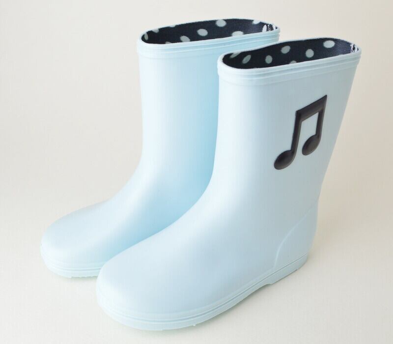 音符のワッペンがついたレインブーツ。