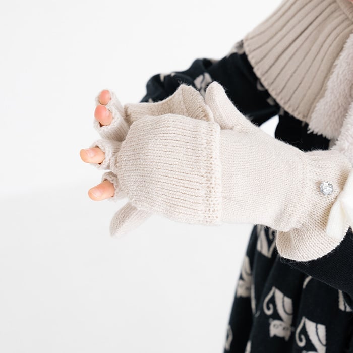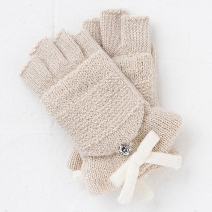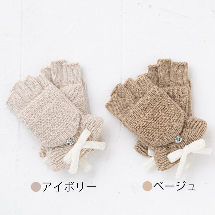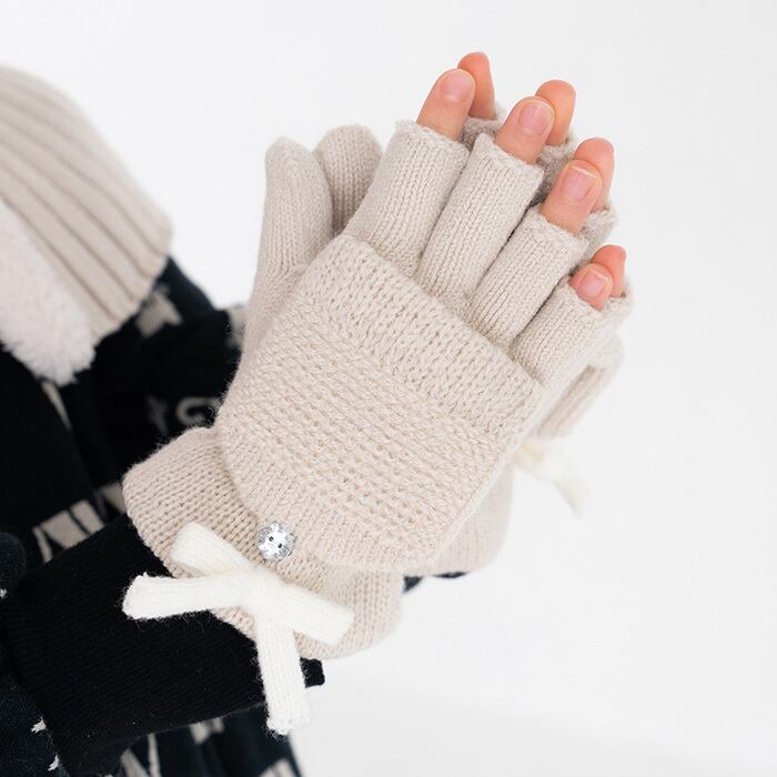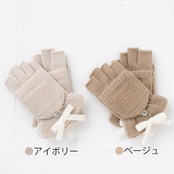 ワンポイントのリボンが可愛いフード付きフィンガーレス手袋。