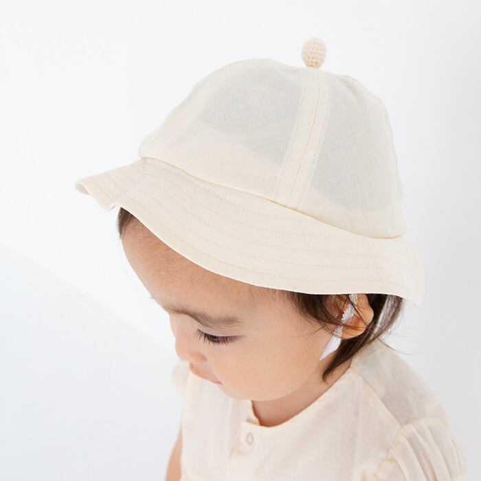 オーガニックのローン生地で薄く軽く作った、一枚仕立ての丸天帽子です。