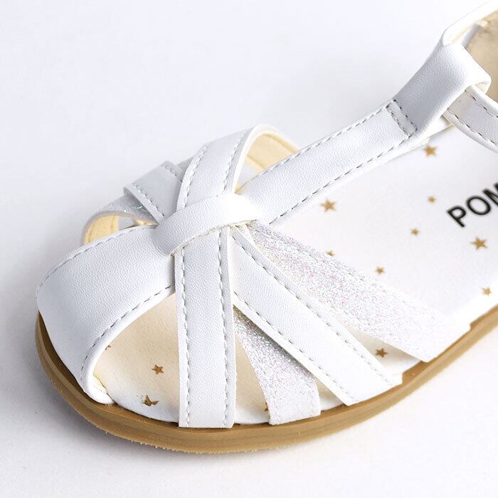 足を包み込むように交差させたデザインは、涼しさと、指が出にくく、女の子らしい可愛さを兼ね備えています。